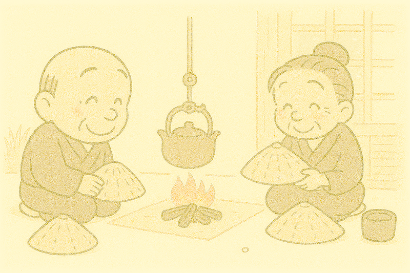 Tuy nhiên, khi nhìn thấy tượng Jizo sama đứng dưới trời tuyết lạnh giá, tôi đã lấy tất cả những nón lá mình có và đội lên đầu tượng Jizo sama.”